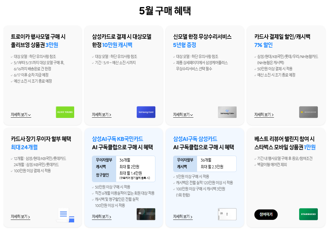 - 구매 타이밍: 5~6월 초 사전 프로모션 적극 활용