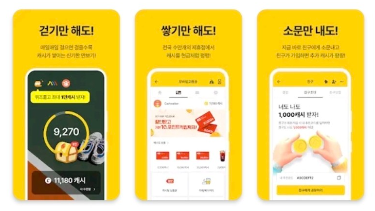 | 캐시워크 | 걸음 수 따라 포인트 적립 | 커피, 편의점 쿠폰 등 |