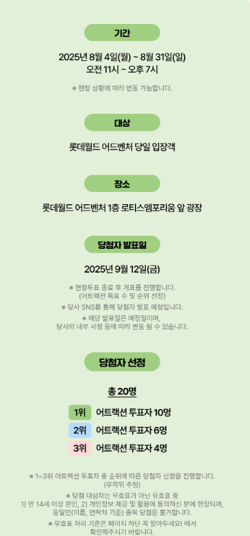 - 대상: 롯데월드 방문자 누구나 (1일 1회 투표 가능)