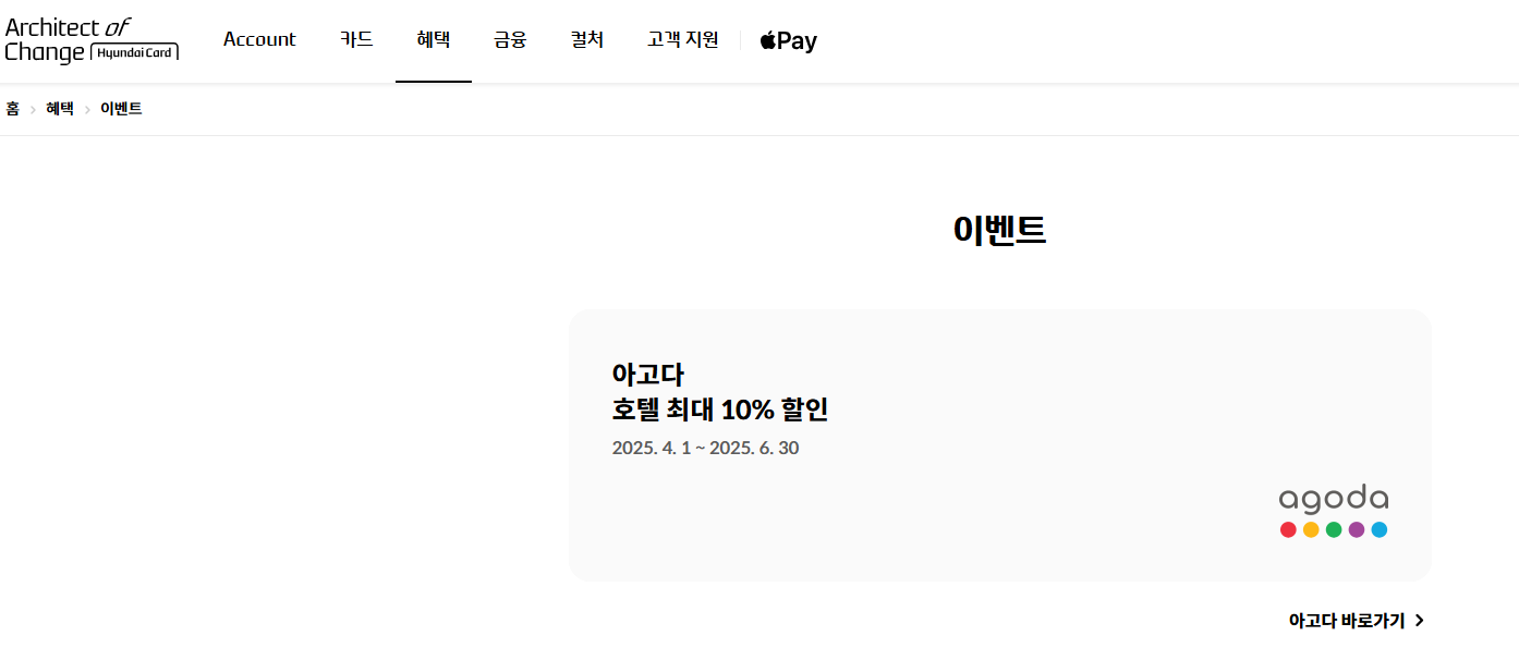 현대카드 X 아고다 10% 할인 👇