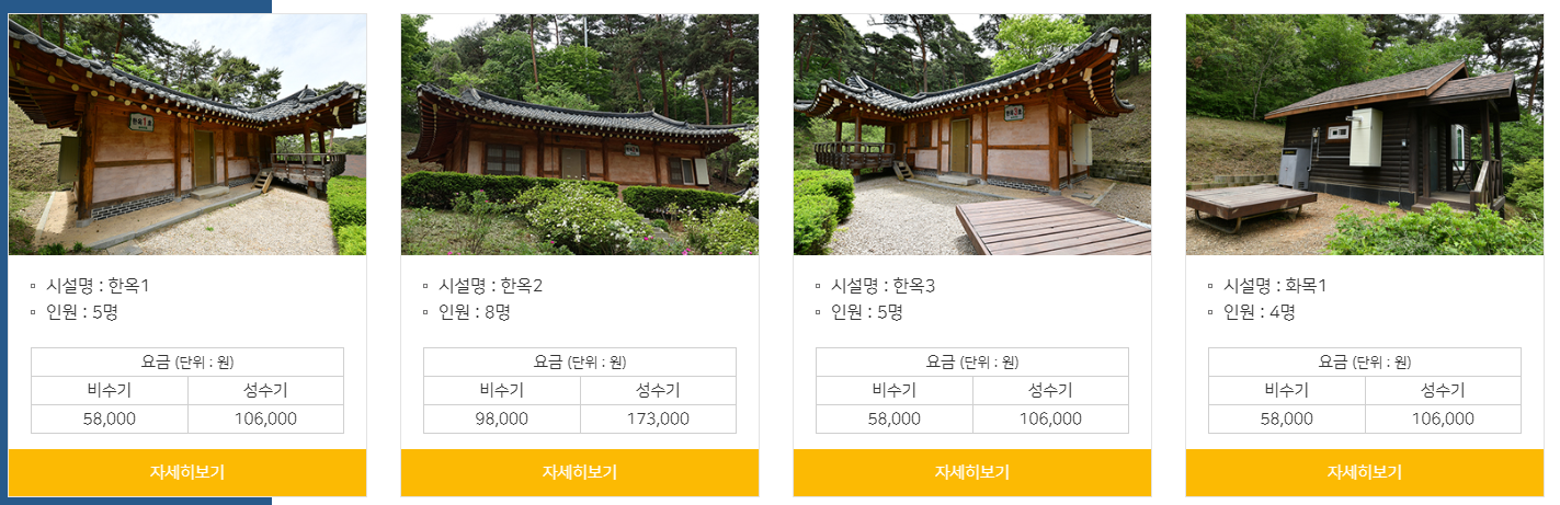 - ✔️ 숲속의 집: 독채형 숙소로 가족 단위 이용에 적합