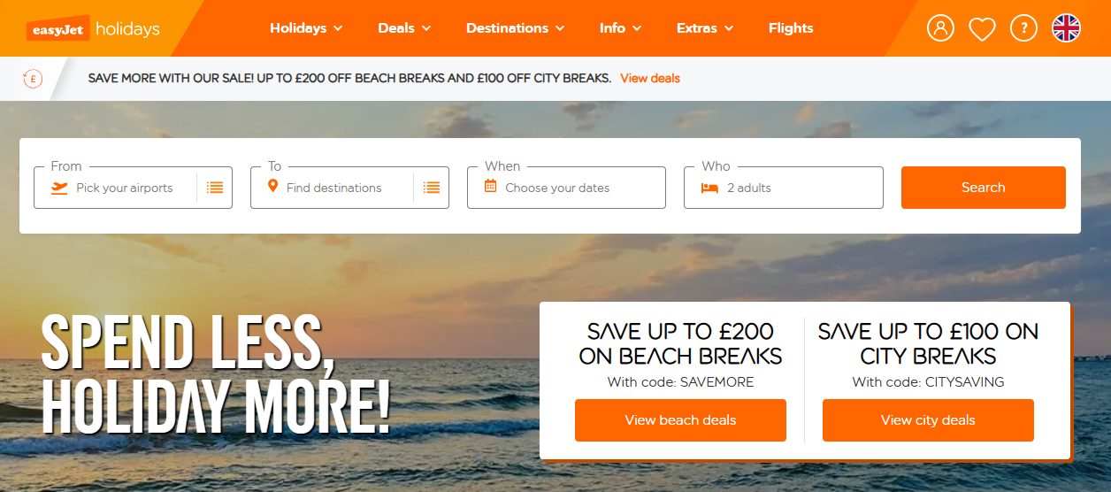 유럽 도착 후, 소도시나 휴양지를 여행하고 싶다면 이지젯(EasyJet), 라이언에어(Ryanair) 같은 저가항공사의 Holiday 패키지를 활용하세요. 항공권과 숙박이 포함되어 있어 따로 예약할 필요도 없고 가격도 매우 저렴합니다. 또한 한국에서는 유럽 소도시 직항 노선이 없으니, 유럽 대도시에서 소도시로 홀리데이를 활용하면 더욱 여행의 폭이 넓어집니다.