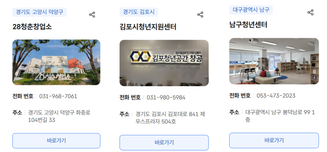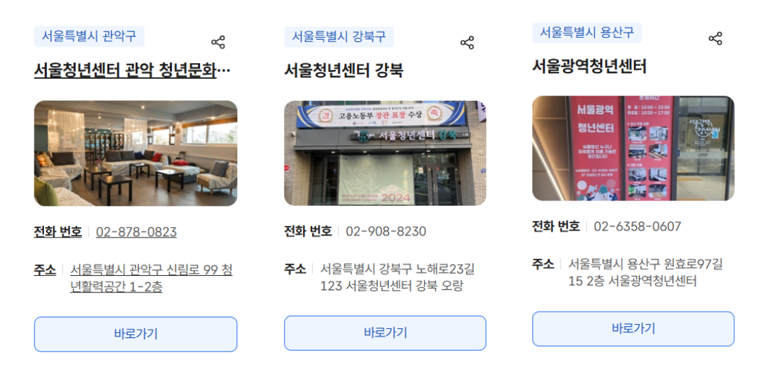 출처: 서울청년센터 지점 안내, 부산청년센터, 온통청년 포털