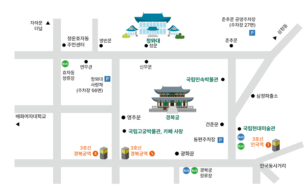 | 지하철 | 3호선 경복궁역 4번 출구 → 도보 10분 |