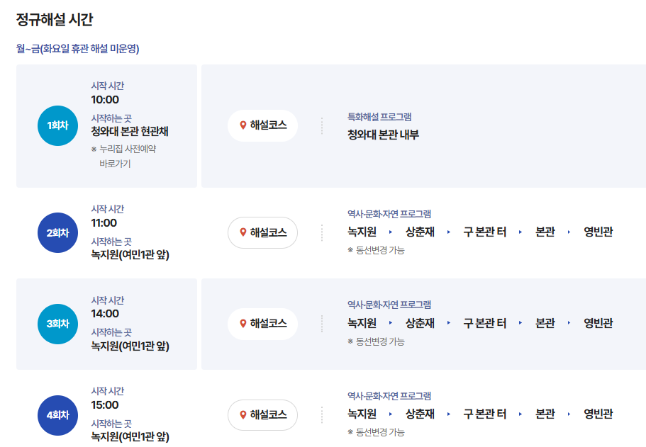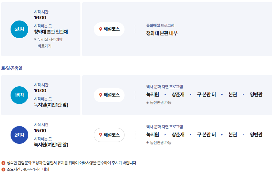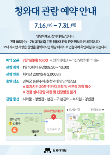 | 예약 사이트 | 청와대 관람 누리집 |