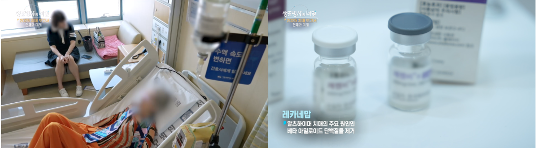 이번 방송에서는 최근 식품의약품안전처의 허가를 받은 ‘레카네맙( 레켐비 )와 같은 신약이 주목받았습니다. '레카네맙'은 아밀로이드 베타를 제거해 알츠하이머의 진행을 늦추는 효과가 있다고 합니다. 치매 치료제 레카네맙이 미국과 일본, 중국에 이어 국내에서도 병원에서 처방을 시작했습니다.