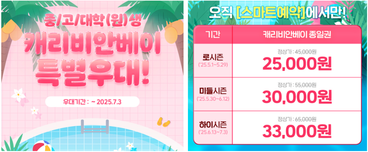 ✔️ 학생 특별우대 캐리비안 특별우대 할인 (스마트예약만 가능)