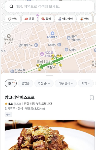 *주변 식당 종류별로 확인할 수 있어서 식당 추천앱으로도 유용*