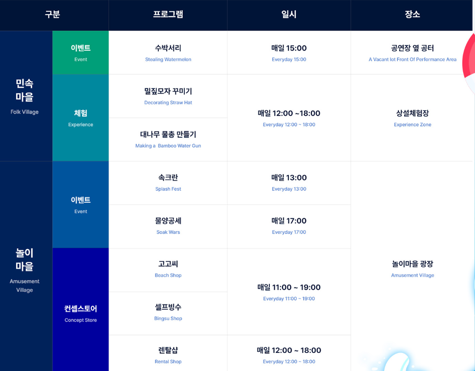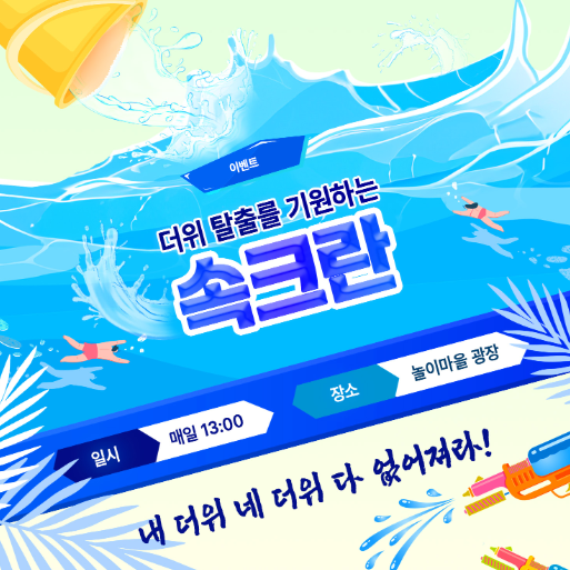 물놀이 메인 타임: 오후 12시 / 오후 3시 (2회)