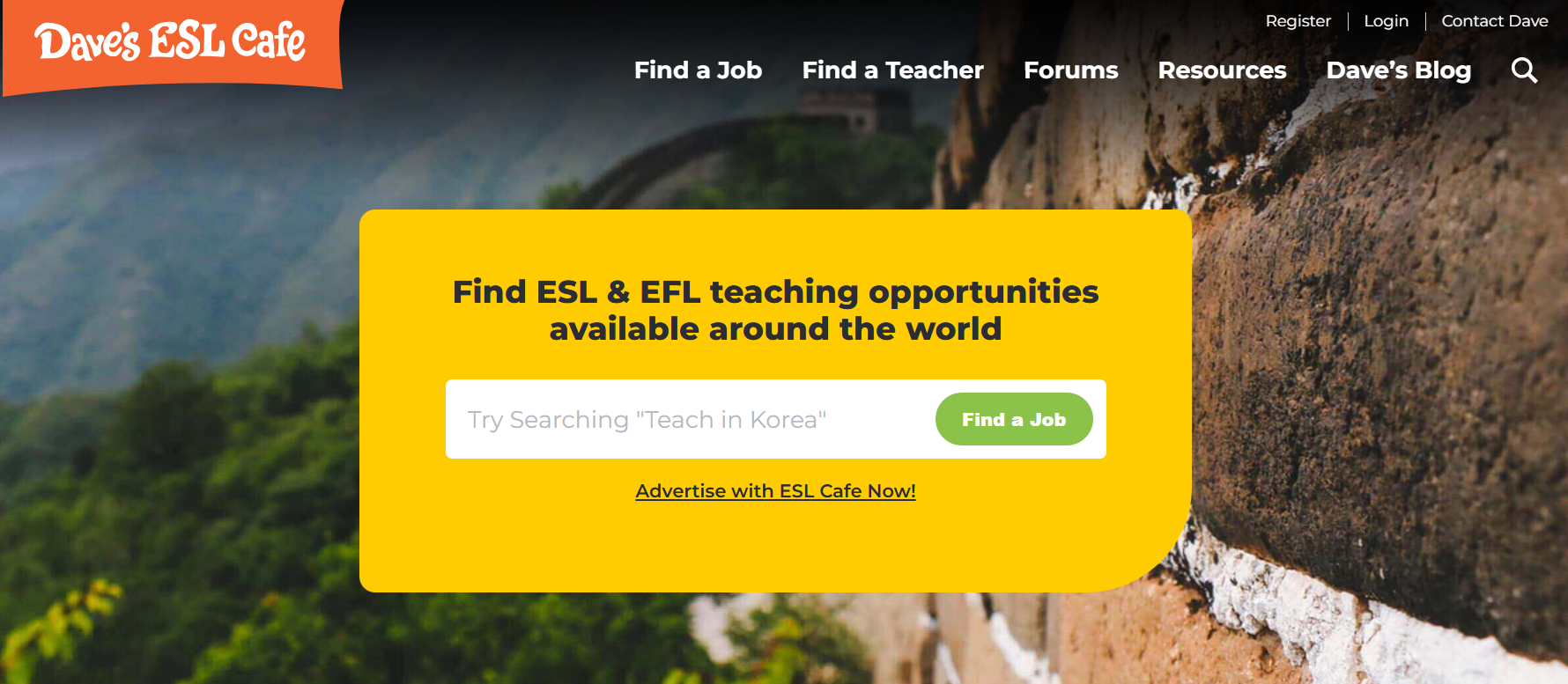 Dave’s ESL Cafe | 전 세계 | 가장 오래된 ESL 커뮤니티. 한국어 강사 공고도 다수 | 바로가기 |