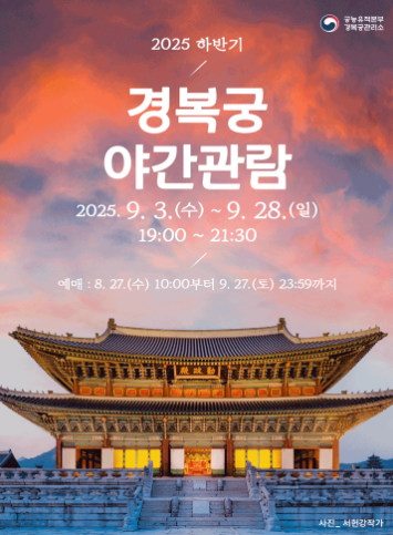 2025년 하반기 경복궁 야간개장은 단 26일만 운영됩니다. 일정·입장 마감·촬영 포인트만 챙겨도 만족도가 크게 올라갑니다. 지금 바로 예매 페이지에서 날짜를 확보하고, 본문 동선대로 움직여 ‘실패 없는’ 궁궐 야경을 완성해 보세요.