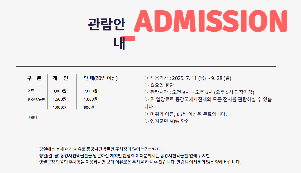 - 영월패스 구매 시 입장료 할인 가능