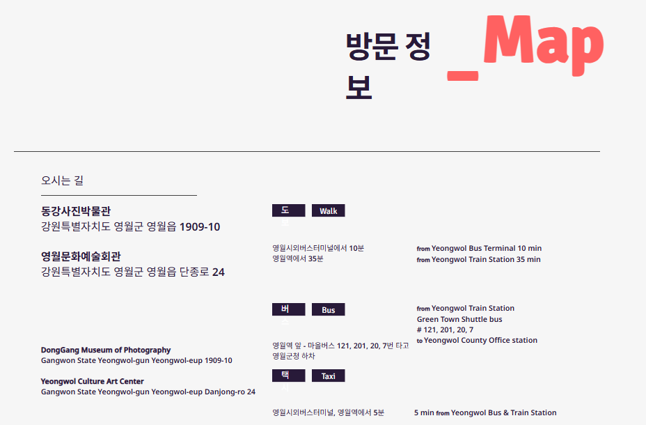 - 모든 전시 관람 전, '동강사진박물관'에서 가이드북 수령 추천