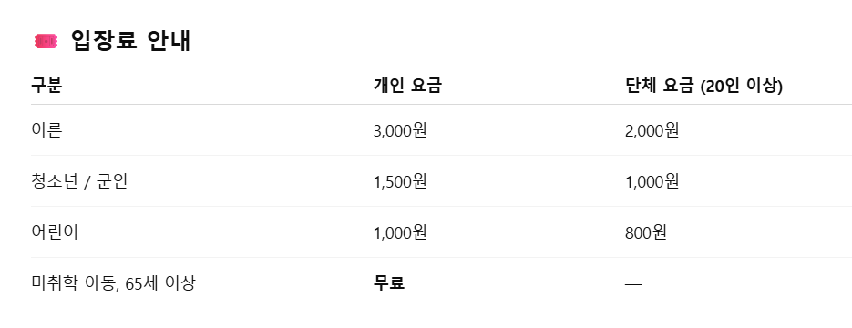 | 입장료 | 유료 |