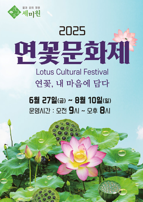 자연이 준 최고의 예술, 연꽃을 가장 가까이서 보고 느낄 수 있는 2025 세미원 연꽃축제. 이번 여름, 번잡한 도시를 떠나 잠시 마음을 내려놓고 싶은 분들에게 완벽한 힐링 여행지가 되어줄 것입니다. 특히 이른 아침의 고요한 풍경은, 오직 그 자리에 있는 사람만이 느낄 수 있는 깊은 감동을 전합니다. 일정 조정이 가능하시다면 꼭 평일 오전 방문을 추천드립니다.